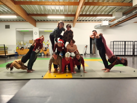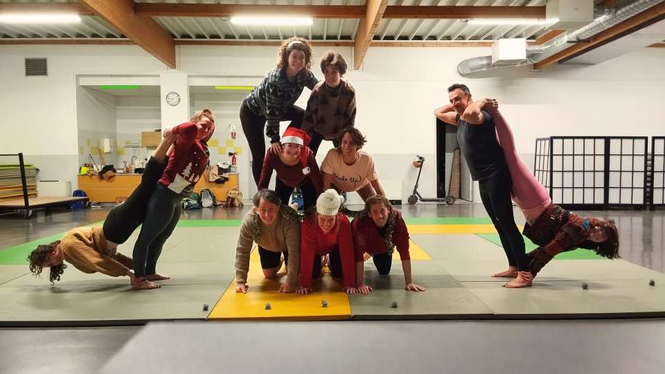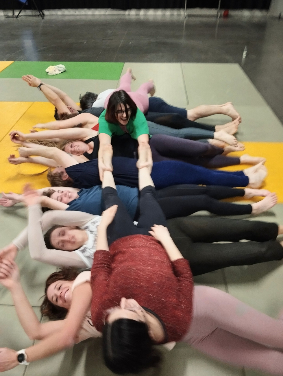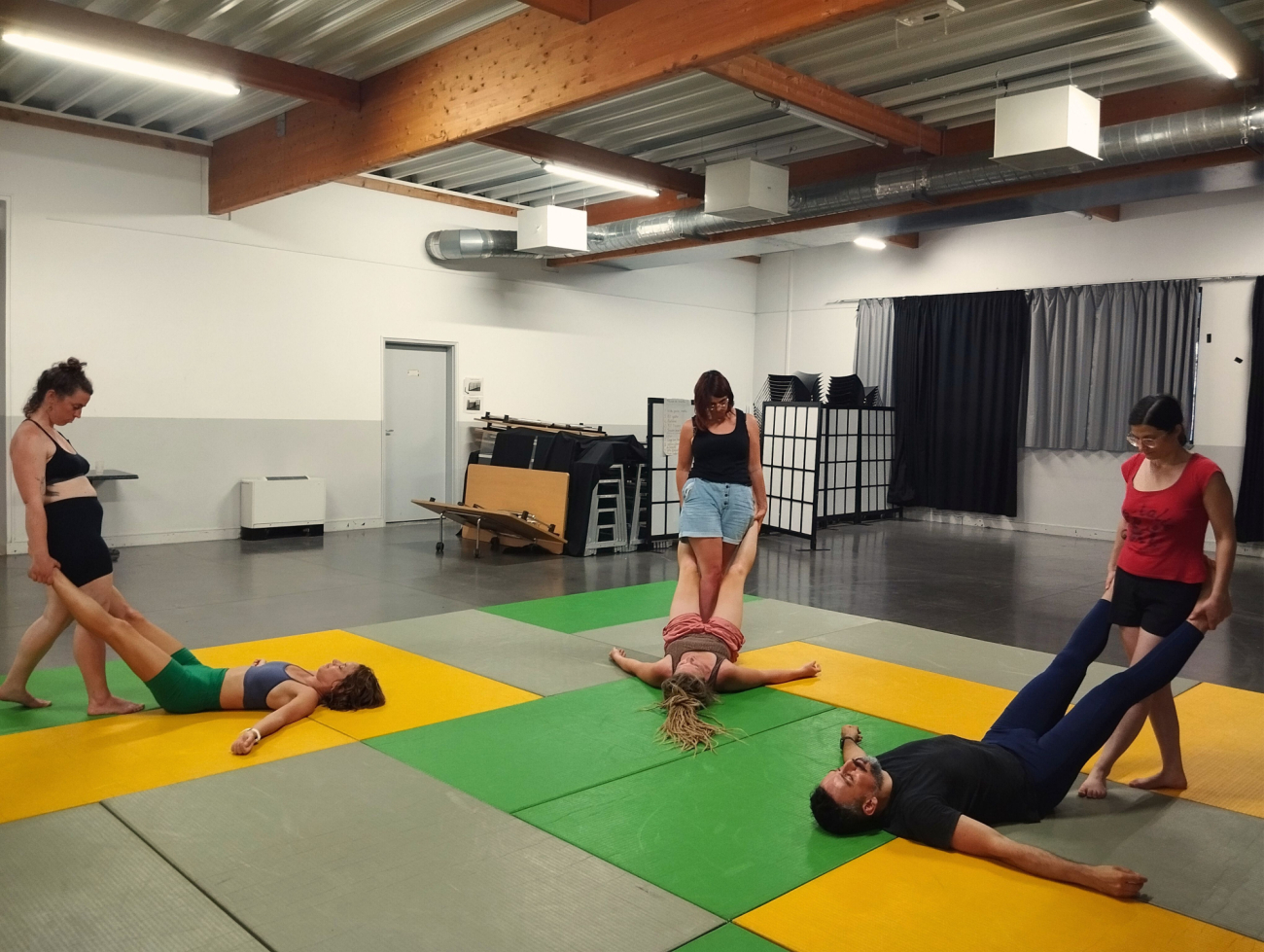 Nous œuvrons à développer et créer des liens entre diverses disciplines et outils, incluant notamment l'acroyoga, le yoga, le cirque, la danse, le théâtre, le spectacle vivant, etc.
