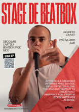 Prochain stage de beatbox au lundi 2 au vendredi 6 Mars 2026 de 11h à 12h au GAM à Mauguio à l'école de musique Music Group Academy. Tarif : 80€