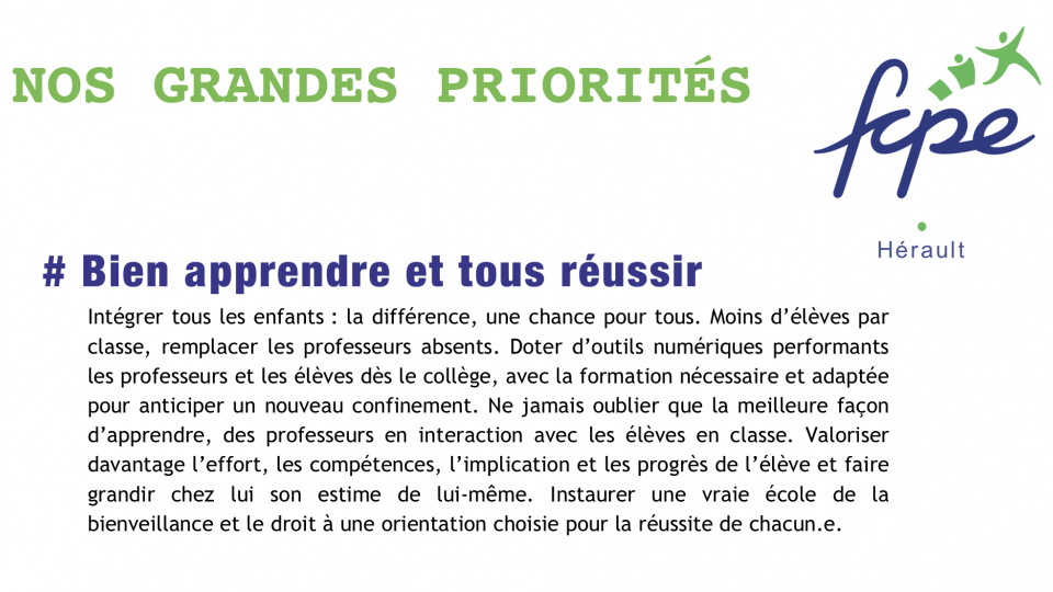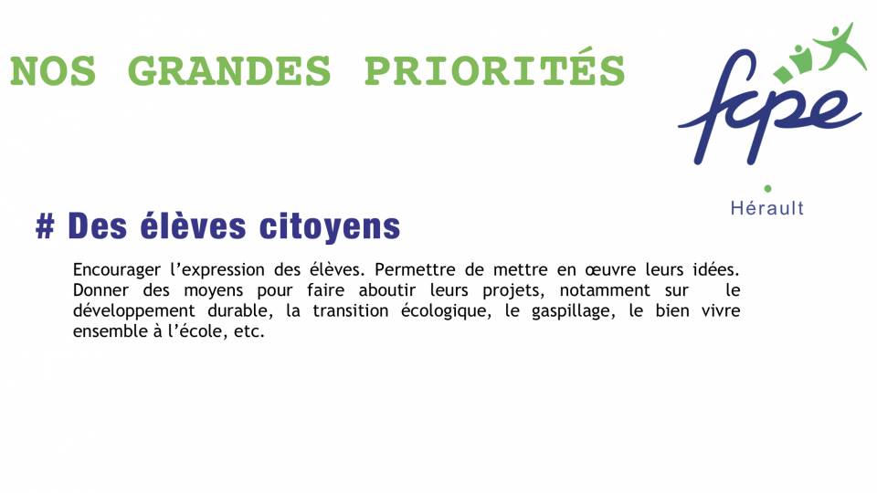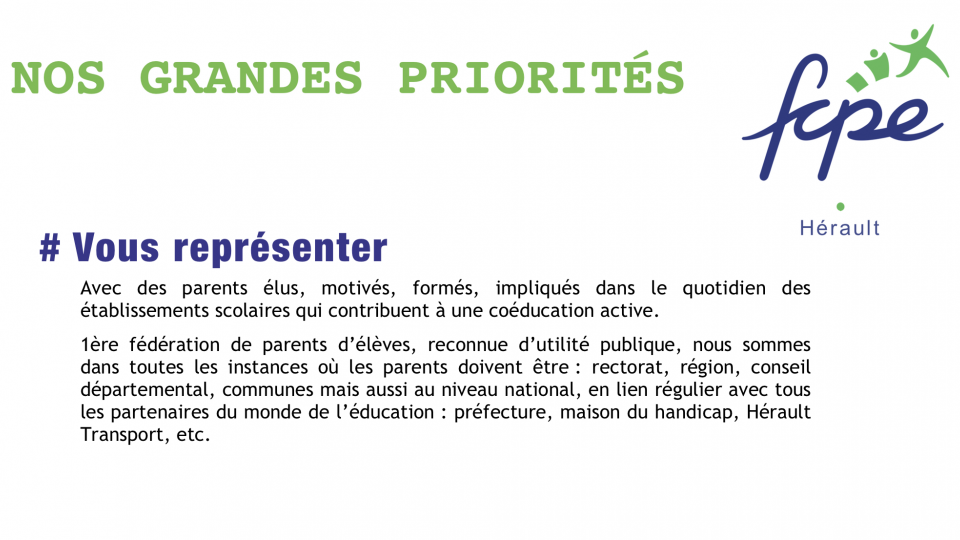 - Des parents informés et participant aux formations FCPE pour mieux représenter les familles et proposer des solutions.