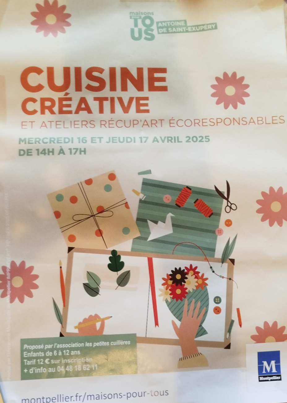 Atelier cuisine et arts plastique à la maison pour tous St Exupéry,