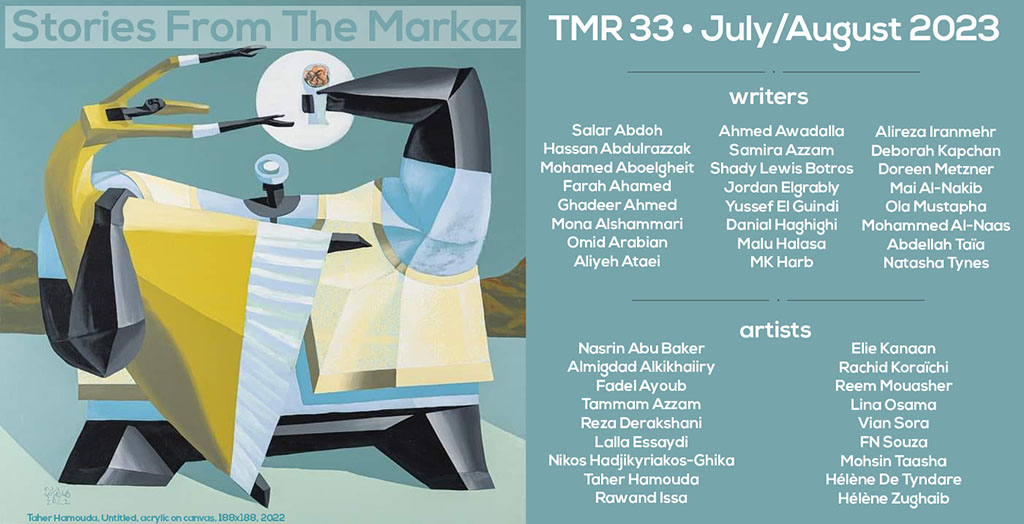 The Markaz Review (TMR) est une revue littéraire et culturelle émergente qui propose des contenus et des actualités en ligne sur le Moyen-Orient, l’Afrique du Nord, et ses diasporas. Nous publions des articles - en anglais, français, espagnol et arabe - dédiés à la critique littéraire, cinématographique et artistique, afin de favoriser le dialogue interculturel. Le Markaz signifie "le centre"…