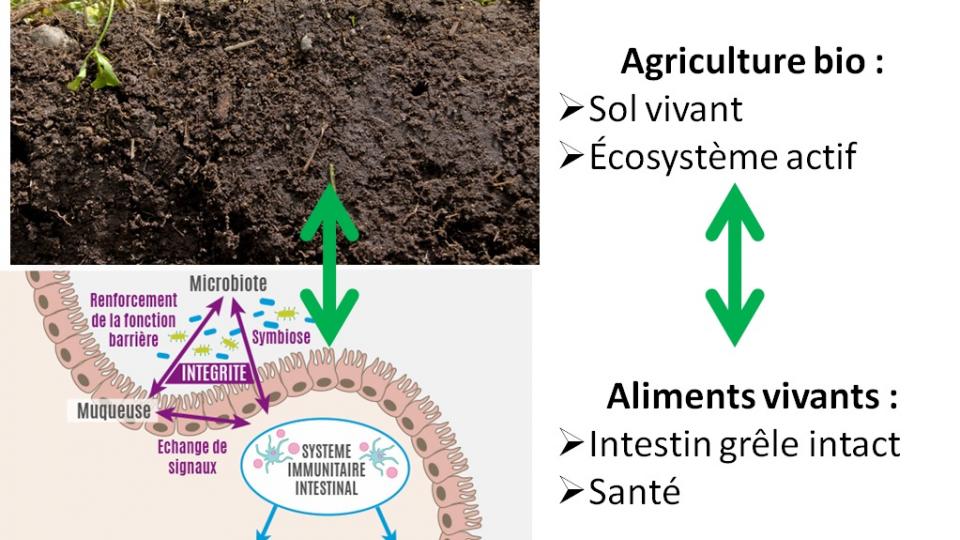 L'agriculture biologique, la permaculture, les techniques comme le semi direct sous couvert vivant redonnent vie au sol, et les aliments produits consommés crus ou lacto-fermentés permettent de reconstruire un microbiote intestinal fort et varié, de décrasser les organes, les liquides intersticiels et les cellules, et ramener le corps à la santé.