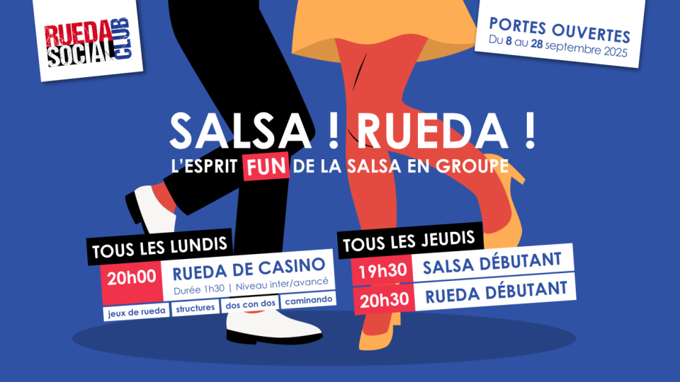 Venez essayer gratuitement nos cours de salsa et de rueda, et rencontrez l'équipe, lors des nos portes ouvertes.
