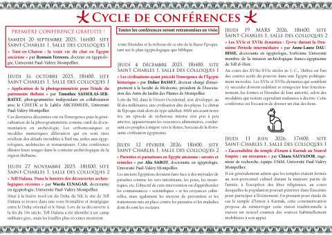 La conférence sera présentée par Laurianne LANCIEN, doctorante en égyptologie, Université Paul-Valéry Montpellier 3.