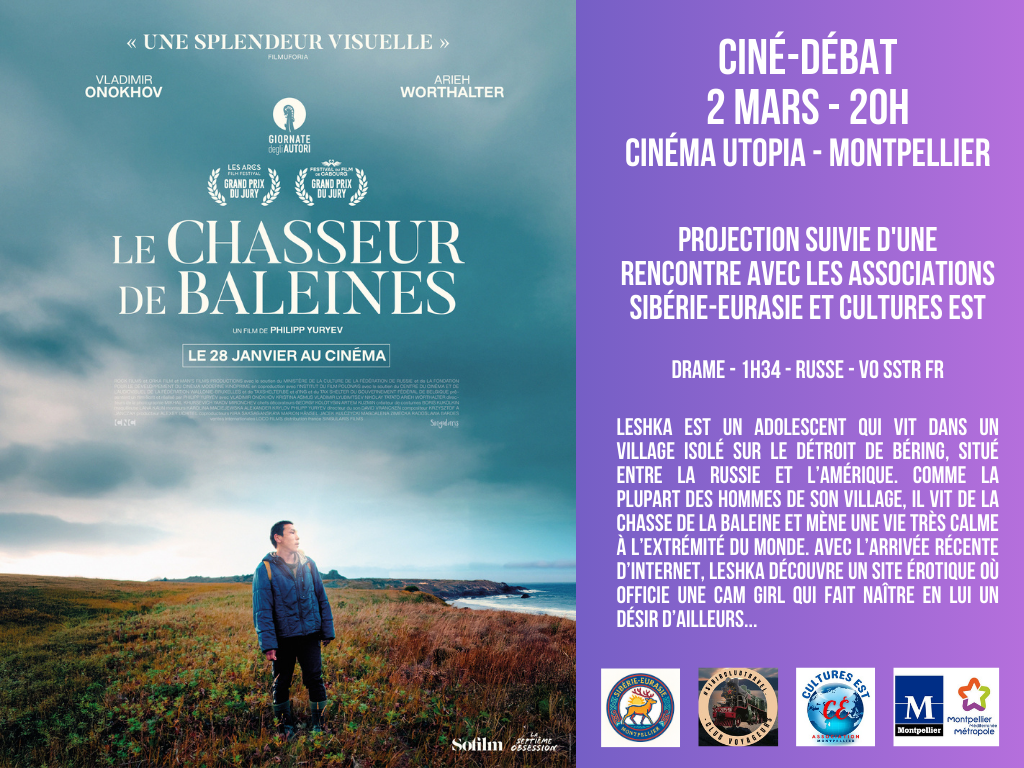 Martine Braquet de l'INALCO, Anastasia Chabrié originaire de Tchoukotka et Thierry de Lobel-Mahy voyageur ethnologue infatigable et vous présenteront leurs photos ainsi que le film LE CHASSEUR DE BALEINES ( Kitoboy ) qui sortira le 28 janvier sur nos écrans ( Utopia pour Montpellier).