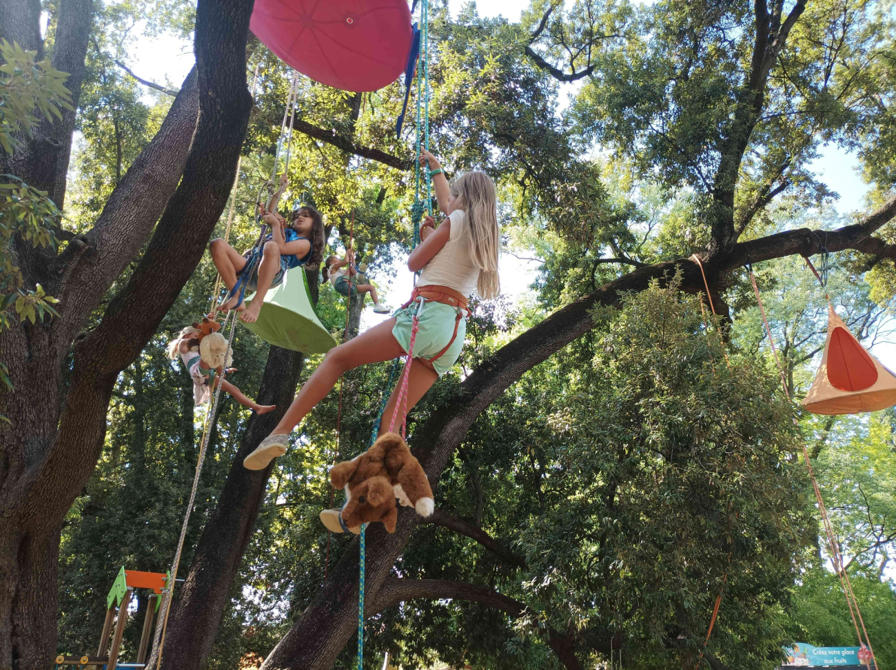 Les ateliers sont de type sensoriels (montée-descente en rappel sur corde, danse aérienne), permettant ainsi d’appréhender la hauteur au rythme de son corps.